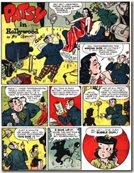 According to Ger’s intro, “Patsy in Hollywood” ran under varying titles in the forties and early fifties, and was helmed by a succession of artists from the Milt Caniff stable. The jokes in these strips may be very pedestrian…
